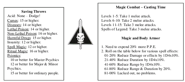To make it easier on us poor, unappreciated, table riding DMs, Palladium had released a “Rifts Game Master’s Kit” (which they also offer for their Palladium Fantasy RPG) as a digital supplement available for purchase through Drivethru RPG at a very reasonable $5.00. This packet is also obtained for free for all “Megaversal Ambassadors” who apply for this title directly through Palladium Books.