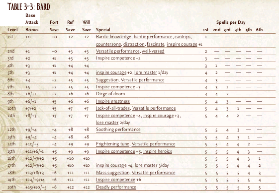 Books Needed: Pathfinder Role Playing Game Core Book First Edition, and D20PFSRD (primarily the Bard page.)