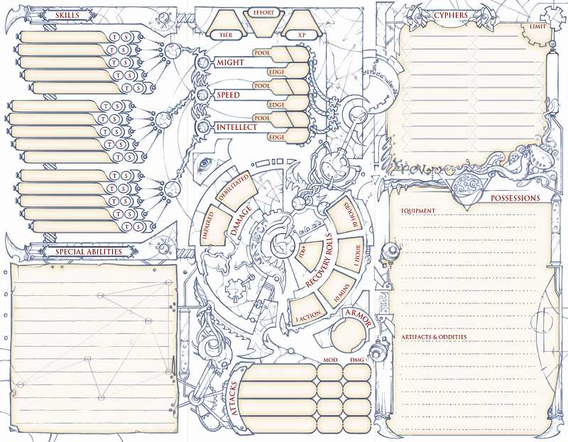 Character sheets are of a penultimate importance to me, they have to be functional or I won’t waste my time on them (if using lined paper and writing out a whole character is easier than using the character sheet, theres a problem with the sheet…looking at you Rifts.) The Numernara sheet is as gorgeous as the artwork from the books, and so unique, but I haven’t played it yet so I can’t speak on its functionality, though I’ve heard it is a very well written sheet. I imagine that once I start playing, I will have to buy a pad of the printed sheets, just to have them in glorious full color.
