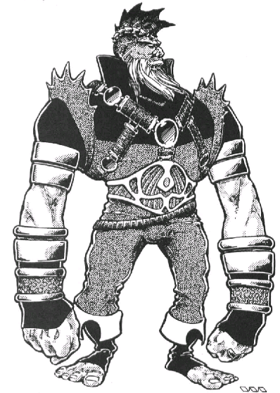 His name was Trigmar, he was a Fallam Operator. This is not an allowed O.C.C. selection for that race, but with the right backstory, I was granted permission. Fallam are savage brutes who value sheer strength and kill count over many things, seemingly even family. Trig was injured and deafened by an explosion while in his teens, rendering him almost useless on the battlefield. His tribe was ready to banish him, perhaps even kill him to hide his “shame”, but he proved himself useful through his high intellect and ingenuity. He upgraded weapons and armour, he became an engineer that could turn the tides of their many wars. Eventually, he had a Daughter, who left to seek her own abilities. Once she stopped writing, Trig went on a great journey that took him to North America in search of her. He excelled at mechanical engineering and was trying to develop his own twist on a flak launcher, because while he was great at making weapons, he wasn’t the most accurate of shots and was actually very clumsy in combat.