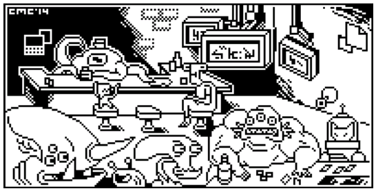 Entertaining, easy on the eyes, and professional; the artwork is what first drew my interest to this game. Fitting very easily in the layout, none of the images are too cramped to see details properly, and most of the composition matter is befitting the text. The artwork itself varies in style and content greatly, and while there are very busy and starkly constrasting pieces, they are shaded and placed in a way that does not detract or distract from the text, either; the works lend to the setting.
